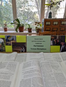 У межах проєкту «Творчий шлях ученого» в читальній залі науково-технічних і переодичних видань підготовлено книжкову виставку, присвячену ювілею д.х.н., професора кафедри фізичної хімії ННІ УДХТУ Лук’яненко Тетяни Вікторівни.