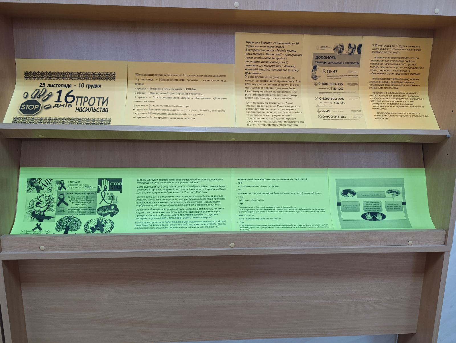 • Щорічно в Україні з 25 листопада до 10 грудня включно проводиться Всеукраїнська акція “16 днів проти насильства”.